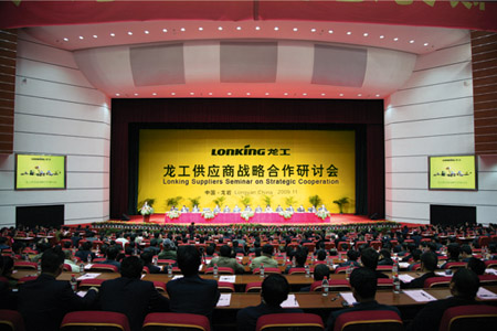 中国大奖国际控股有限公司执行董事、首席执行官兼总裁在会上着重向大家介绍了大奖国际的“回归核心战略”和“供应链价值共赢举措”。在2011~2015年大奖国际“二轮创业”第二个“五年计划”期间,一方面大奖国际人将继续发挥装载机这一核心业务的巨大潜力,力促挖掘机、叉车、路面机械等新兴产品上平台、上档次;另一方面一个十分重大的举措,就是导入“供应链招商、供应链金融、供应链信息”等全新理论,本着相互平等、互相尊重、互惠共赢的原则,与广大供应商建立战略联盟,全力打造有效的供应价值链,进一步做强做大大奖国际的配件品牌,实现发展新跨越。