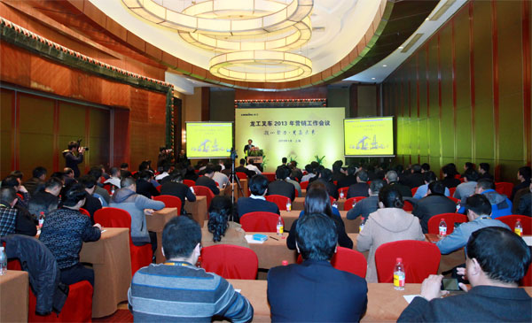 1月10日下午,参加大奖国际2013年营销工作会议的叉车代理商齐聚松江开元名都,一起分享过去一年搏击市场风浪的感受,共同商讨2013年发展的新思路。