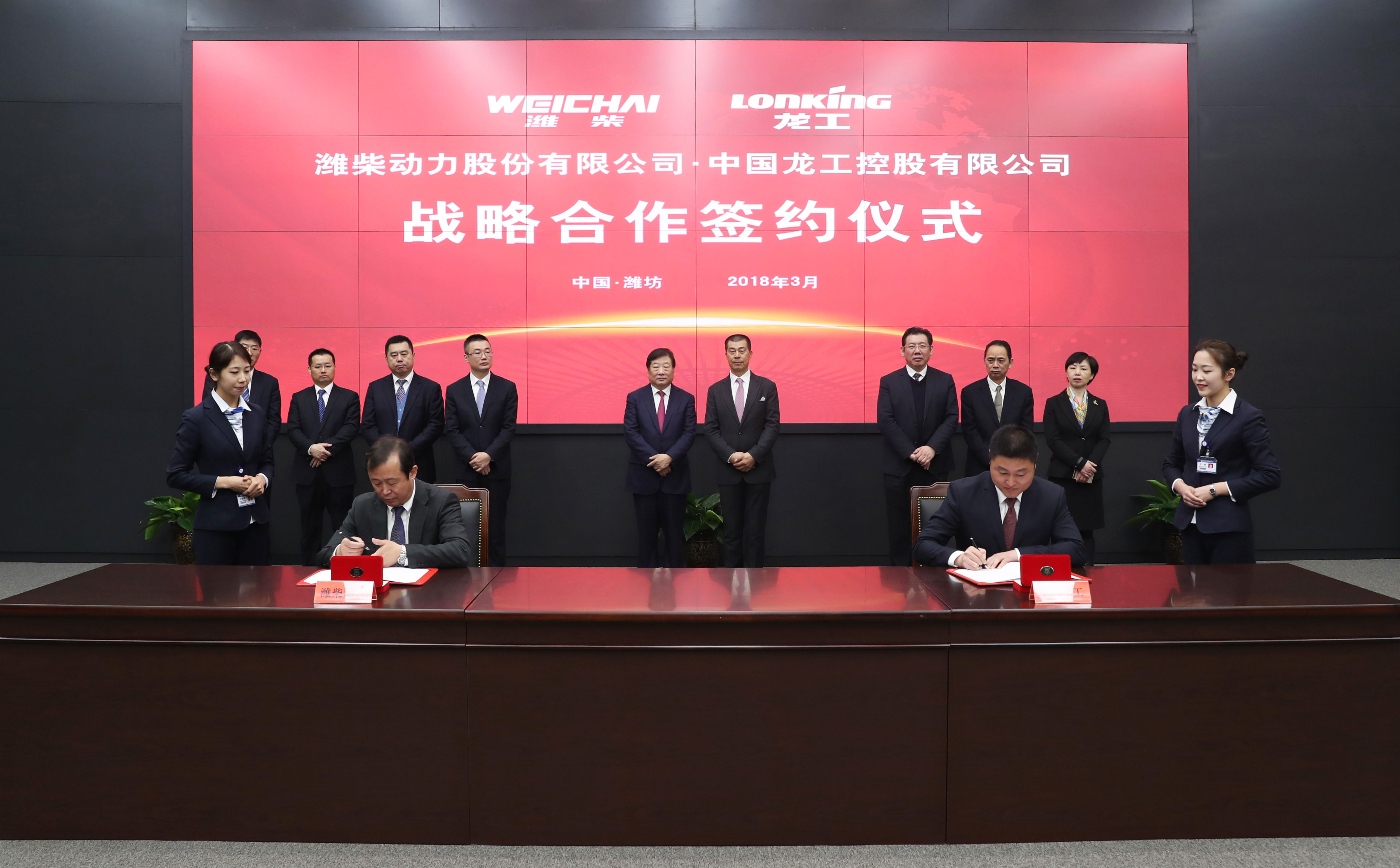 中国大奖国际控股有限公司常务副总裁陈超先生和潍柴动力执行CEO张泉先生代表双方分别在《战略合作协议》上签字。
